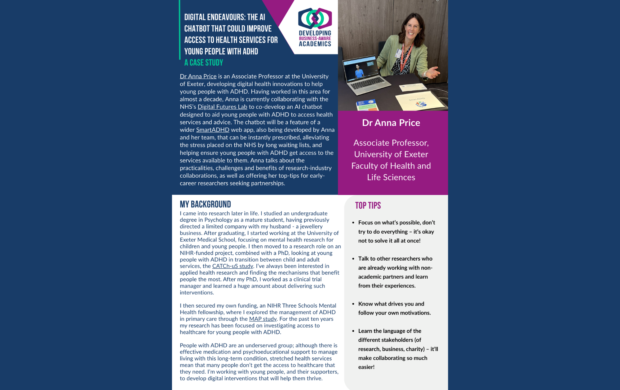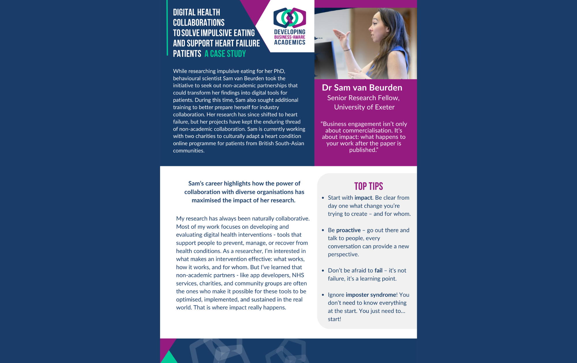 We also have two fantastic new case studies focused on digital health. From AI chatbots developed with industry, to collaborations with community groups to support heart failure patients, our featured researchers describe how their non-academic partnerships boost the impact of their research.