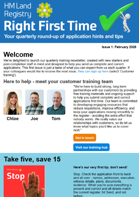 5. When applying to register the Official Custodian for Charities as the proprietor of land under an order of the Charity Commission under s.76 of the Charities Act 2011, you should also apply for: